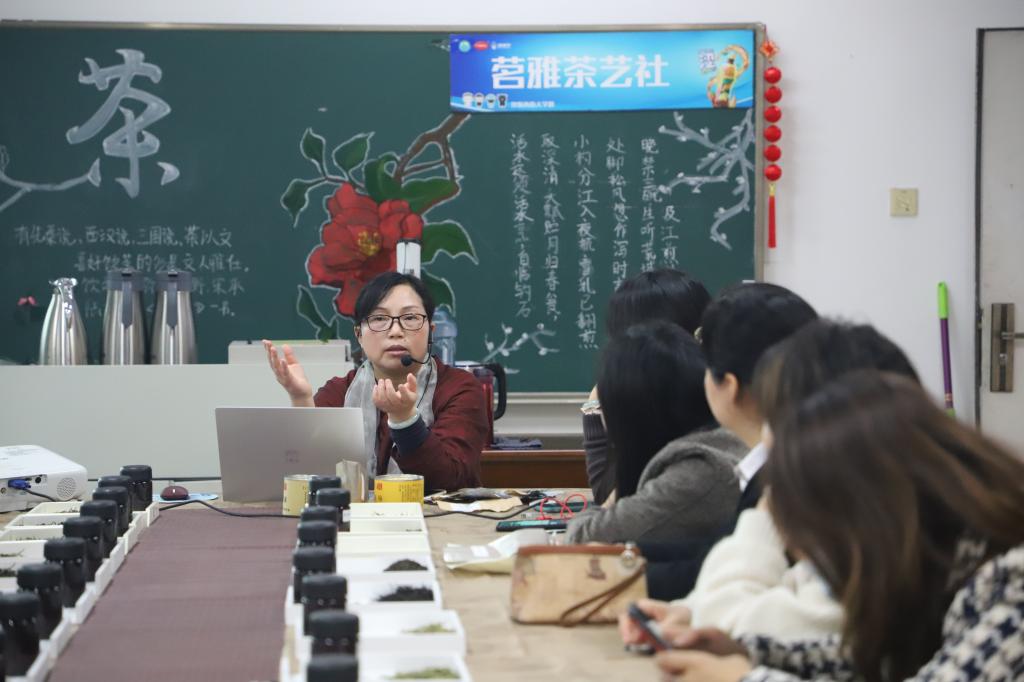 首先,宋华英向大家送上了一堂茶文化专业课,对茶文化、茶叶的功效、科学饮茶、茶类茶样的识别、名茶品鉴方法等内容娓娓道来。随后现场提问,向大家抛出如何识别绿茶、白茶、黄茶、青茶的问题,引起了大家的热烈讨论,被茶文化的博大精深深深折服。茶文化的理论知识讲解完毕,大家开始了名茶品鉴活动。大家一边品茶一边聆听宋华英老师的讲解,对不同茶饮的色香味啧啧称赞。