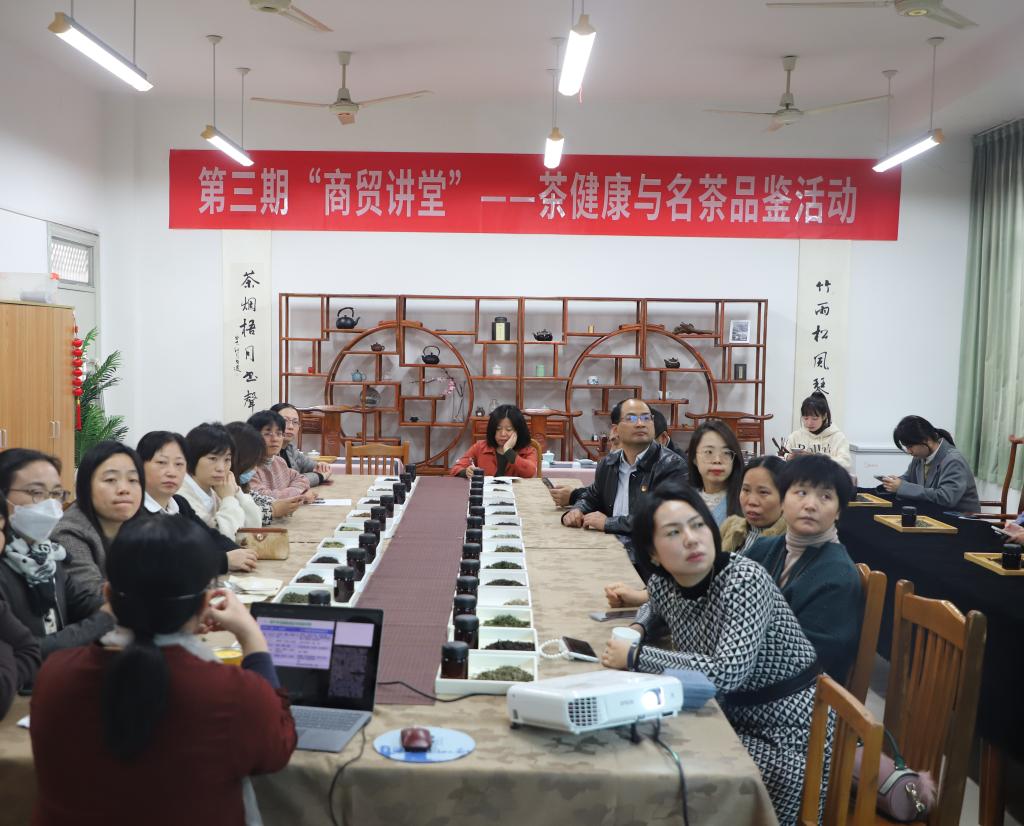 为活跃分院文化育人氛围,提升教师文化修养,11月17日下午,yl1111永利集团第三期“商贸讲堂”在8611茶艺室开讲。本期讲堂的主题是“茶健康与名茶品鉴”,由国家茶艺考评员、一级茶艺师,智慧旅游管理专业教师宋华英主讲,yl1111永利集团经理张赵根和分院30余名师生代表参加了此次活动。