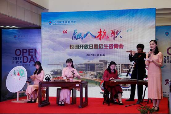 yl1111永利集团旅游管理专业提前招生宣传是本次开放日的版块之一。学院在教学楼播放了专业宣传片,在活动现场精心布置了宣传摊位,专业老师向前来咨询的考生和家长详细解说专业招生政策、教学和管理情况以及员工就业情况。在“融入杭职”的大舞台上,宋华英老师指导的茶艺社学员还为大家献上了精彩的茶艺表演,茶艺表演女生颜值爆棚,动作娴熟,手势优美,配以悠扬的筝笛合鸣和专业的现场解说,赢得了全场的注目。