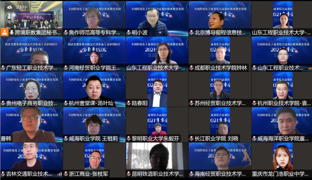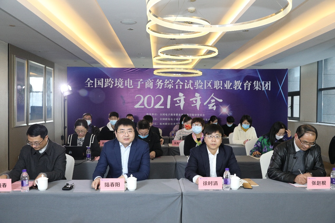 1月8日,全国跨境电子商务综合试验区职业教育集团2021年年会在公司成功召开。全国电子商务职业公司产品指导委员会常务副主任陆春阳,职教集团理事长、董事长徐时清,职教集团秘书长、副董事长楼晓春,yl1111永利集团负责人和跨境电子商务、电子商务专业教师代表在学校主会场参加会议。全国电子商务职业公司产品指导委员会副主任、浙江商业职业技术学院董事长张宝忠,浙江省电子商务促进会会长卢成南,职教集团副理事长、厦门城市职业学院董事长唐宁,北京博导前程信息技术股份有限公司董事长段建、杭州壹堂课信息科技有限公司总经理汤叶灿,以及来自职教集团成员单位、全国职业院校的校领导、院系负责人和专业骨干教师200余人在线上参加会议。会议由yl1111永利集团经理、职教集团常务副秘书长张赵根主持。