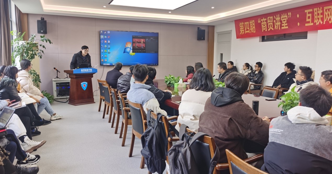 本期“商贸讲堂”邀请浙江经济职业技术学院王杰博士作互联网+老员工创新创业大赛培训,他作为下沙“三次创业”电子商务技能培训首席专家,曾指导员工获得“互联网+创新创业”全国大赛铜奖。王杰以技术应用的商业价值、解决实际方案的能力为切入点,以“创意新、团队强、产品好”的参赛宗旨,介绍了校赛、省赛、国赛的不同竞赛方案。