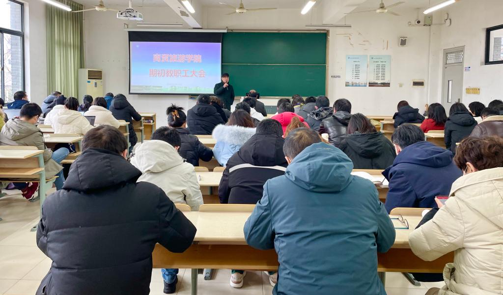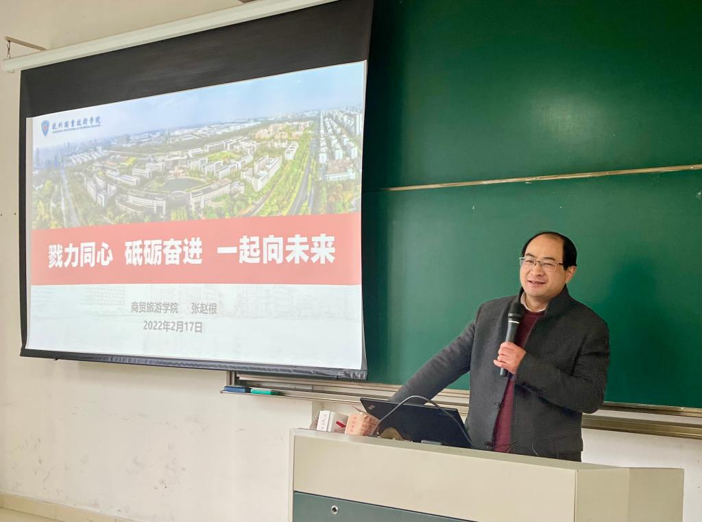 会上,张赵根以“勠力同心,砥砺奋进,一起向未来”为题作报告。他首先传达了学校期初中层干部会议精神,要求全体教职工围绕“建功双高、献礼校庆”主题,瞄准“一个中心、五项重点”任务要求,为圆满完成今年学校和分院各项工作任务开好局、起好步。随后,他回顾了分院寒假主要工作,对新学期重点工作进行部署:一是党建引领,在分院治理上实现新提升;二是聚焦重点,在数字商贸专业群建设实现新发展;三是超前谋划,在标志性成果培育上取得新突破。他希望全体教职工不断增强政治意识、拼搏意识、团队意识和尊严意识,勠力同心,砥砺奋进,以团结奋斗共同演绎大商贸精彩,为学校“双高”建设和“升本创大”助力,为打造特色鲜明、省内一流的数字商贸技术技能人才培养高地持续贡献力量。