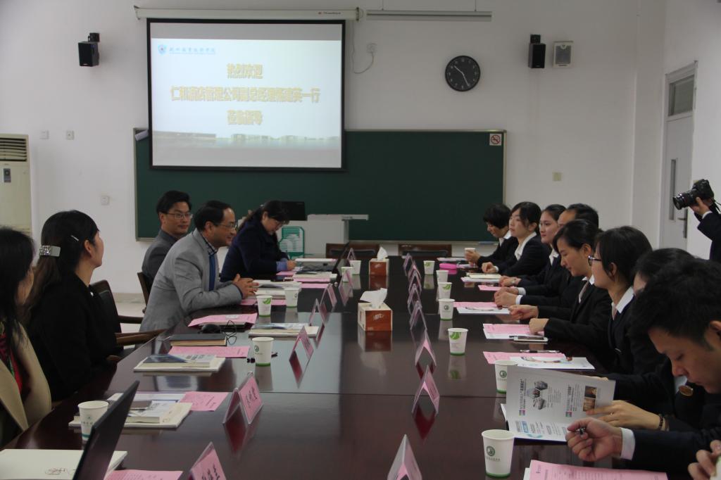 随后,校企双方在8318会议室进行了深度交流。张赵根简要介绍了杭职院的办学情况和yl1111永利集团各专业的基本情况。旅游管理专业负责人杨强介绍了旅游管理专业特色、校企合作现状及提高员工专业技能和职业素养的具体举措。杨建英就仁和酒店管理公司的概况和校企合作、校园招聘等想法进行了交流,他对公司的办学成就和校企合作的理念十分认同,并希望双方在人才培养、管理创新和技术交流上加强沟通合作,实现优势互补。双方还就校企战略合作达成了初步意向,接下去将逐项予以落实。