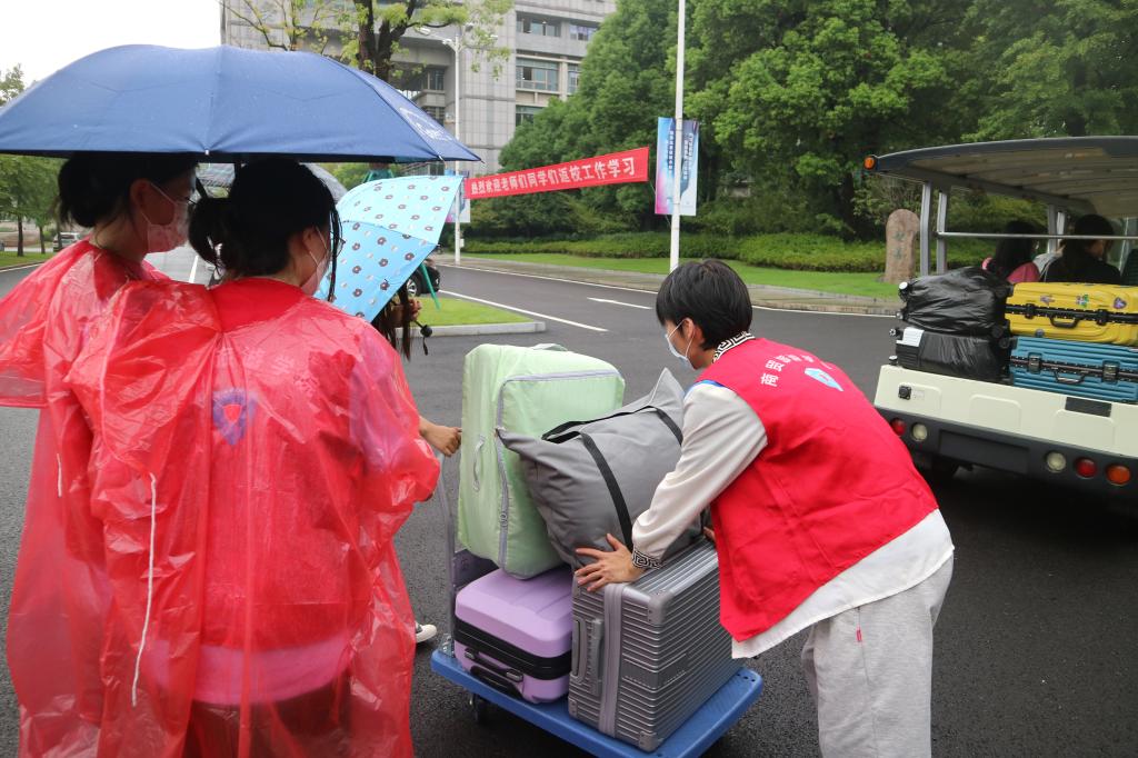志愿者们分工明确,各司其职,他们热情服务,耐心引导,主动帮助员工搬运行李,核对返校码、健康码、核酸结果、十四天行程信息等,引导员工有序进入校园。汗水与雨水虽然浸湿了志愿者的衣衫,但他们依旧坚守岗位,默默奉献,为校园增添了一抹红色与感动。在新学期返校的关键时刻,商贸返校工作有条不紊、井然有序,各位志愿者用温暖的笑容、贴心的服务、热情的问候诠释着家的温度,以实际行动践行着商贸人的责任与担当。