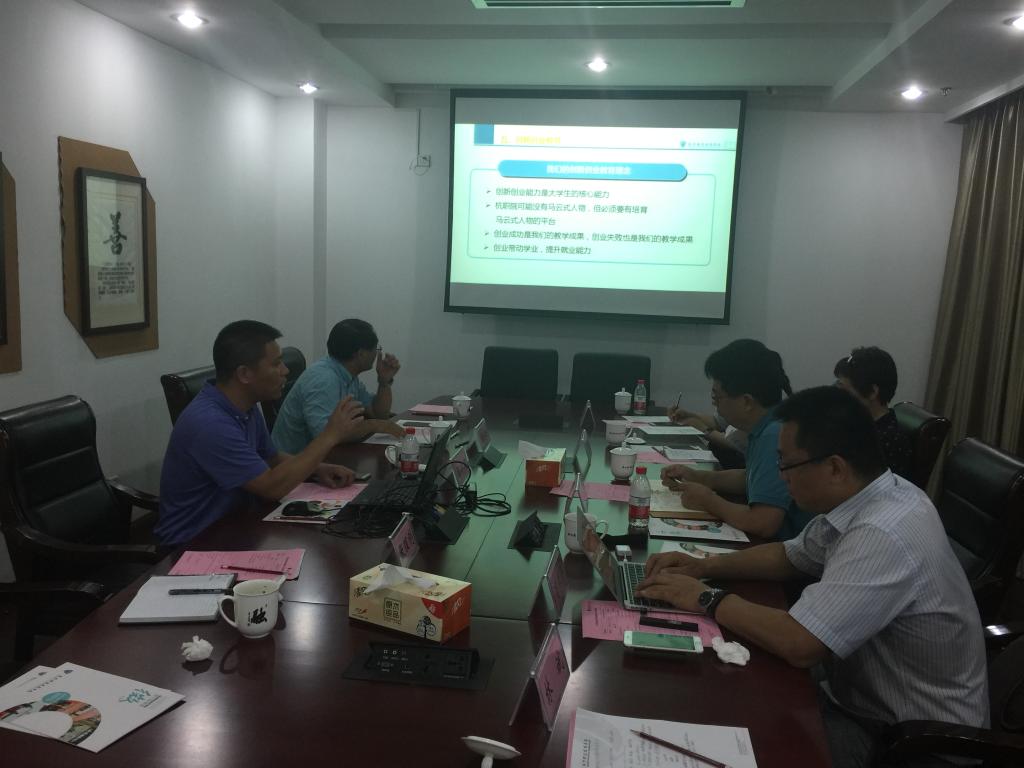 随后,双方在行政楼第五会议室进行了座谈交流。陈加明首先介绍了公司跨界融合推进校企共同体建设的特色与成效,并着重介绍了公司“创业带动学业”的创新创业教育模式。刘全宝表示,此次来学校实地考察深受震撼,杭职院在校企合作、产教融合方面所取得的成就令人瞩目,创新创业教育的理念、成果国内领先,新道科技很期盼能够与学校开展合作。会上,双方就创新创业教育实践平台搭建、课程开发、团队建设等方面进行了初步的沟通与交流,并指定联系人会后进行对接,进一步探讨合作推进事宜。