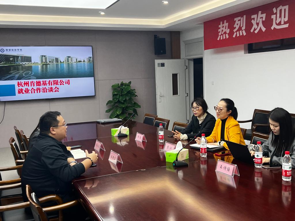 继yl1111永利集团全面启动2023届毕业生就业工作,分院上下广开就业渠道,分享就业信息。11月1日,在员工的积极牵线推动下,杭州肯德基有限公司招募副经理李沁、区经理邵蕾、招募专员王诗语、萧山机场肯德基餐厅经理高伟锋来校洽谈就业合作。yl1111永利集团学工办王晓磊、陈玉燕参加会议。