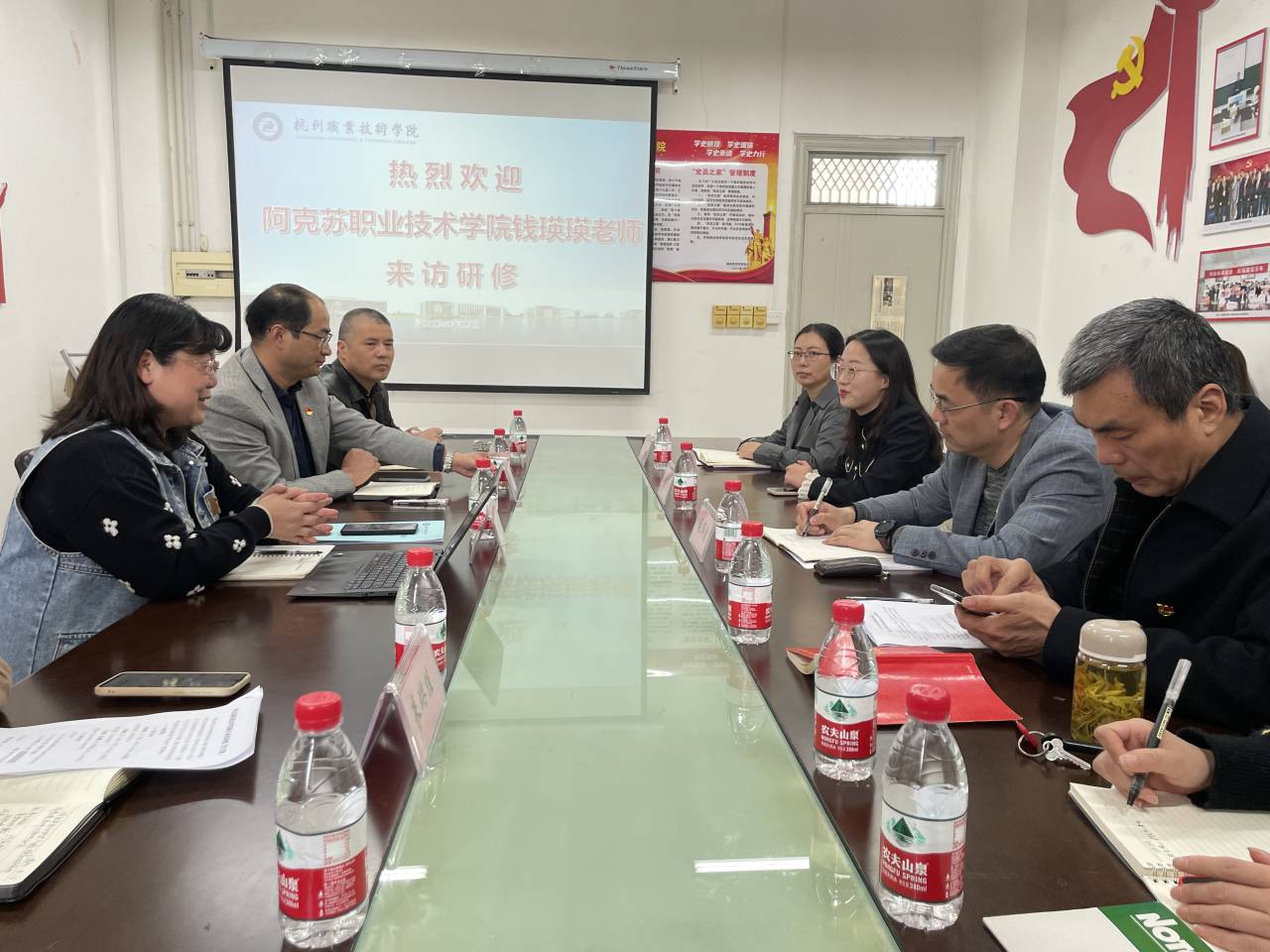 张赵根对钱瑛瑛老师的到来表示欢迎。他表示,阿克苏是杭州的对口帮扶城市,阿克苏职业技术学院和杭州职业技术学院也建立了良好的合作交流关系;希望钱老师通过这次学习交流的机会,进一步促进双方学校和旅游管理专业建设的交流互鉴,共同推进旅游管理专业技术技能人才培养改革。周佳良也对钱老师表示热烈的欢迎,并对她在公司的学习、工作和生活提出了希望和建议。杨强向钱老师一一介绍了专业组教师及其主要负责的课程,欢迎钱老师一起参与听课、教学改革研讨等相关教学任务。