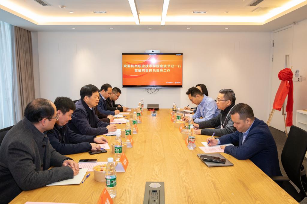 刘国峰对金波一行来访表示欢迎。他简要介绍了阿里巴巴集团的总体概况、产业布局和未来发展战略等情况,并就共同推进数字商贸产业学院建设、共促员工高质量就业、共同开展国际交流合作、服务乡村振兴、团队培训等方面提出了很好的设想。刘国峰表示,阿里巴巴作为杭州本土企业,期待与国家“双高校”杭职院强强联合,进一步深化校企合作,共同打造推动高质量就业的产教融合“全国样板”,共同为浙江省高质量发展建设共同富裕示范区贡献力量。