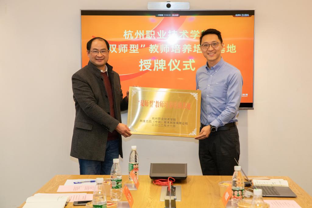 会上,校企双方举行了“乡村振兴产教融合协同创新中心”揭牌和“‘双师型’教师培养培训基地”授牌仪式。最后,双方重点围绕数字商贸产业学院建设和员工就业创业等工作进行了深入地交流研讨。