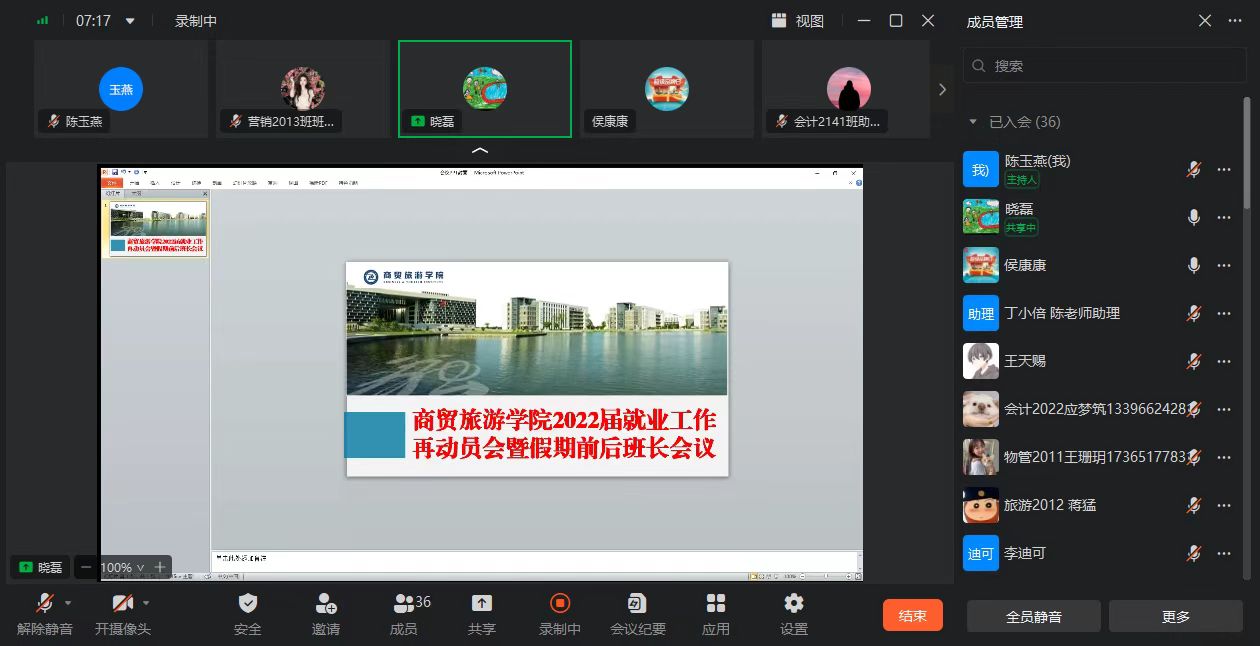 为应对“最难就业季”,切实激发全体2023届毕业生就业热情,全力打好“春季促就业攻坚战”。4月3日晚上,yl1111永利集团在钉钉群召开2023届毕业生就业动员会。分公司党总支副书记周佳良、学工办辅导员王晓磊、陈玉燕、李迪可及2023届毕业班班长、班助参加会议。