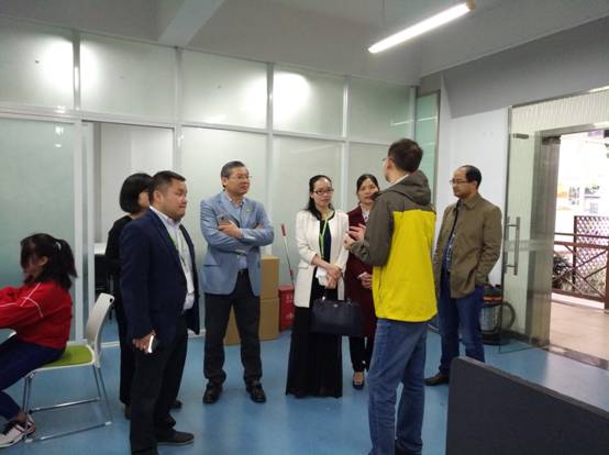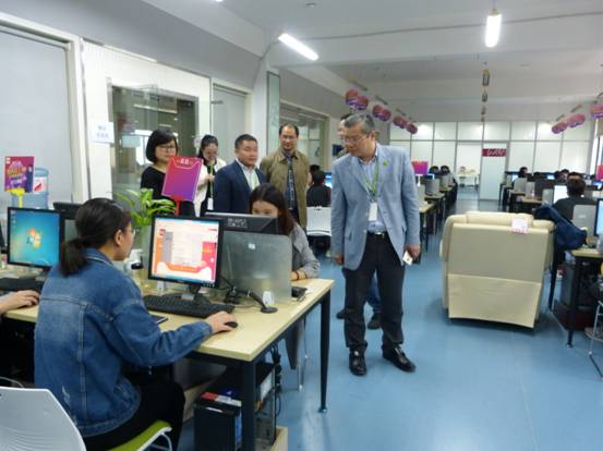 施健一行首先参观了电子商务专业电商实训中心,实地考察了电子商务专业岗位工作室建设、企业项目运营的具体情况。