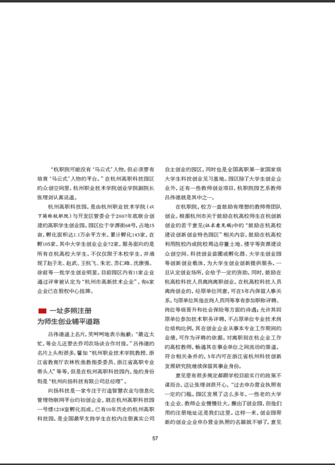 由杭州经济技术开发区党工委、管委会主办的内刊《下沙新城》 ,2017年第三期对公司创业园进行了专题报道。全文如下: