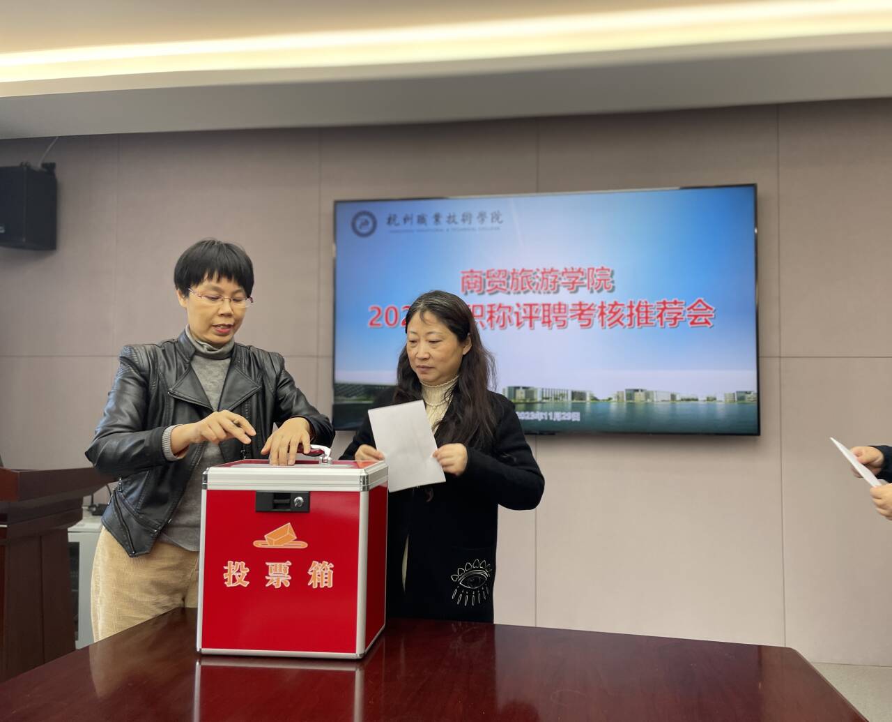 今年共有6名教师参评高级专业技术职务,其中参评正高1名,参评副高5名。推荐会上,综合办负责人介绍了今年分院教师职称评聘工作的基本情况,袁江军副经理依次介绍了各位参评教师的业绩情况。张赵根经理强调了本次考核推荐会的相关要求,要求大家认真审阅材料,严肃认真、客观公正地完成考核推荐工作。随后,推荐组全体专家仔细查阅了职称材料,对各位参评教师的专业建设、公司产品、育人工作、师德师风等方面表现进行了综合的考核评价。会议最终采用无记名投票形式确定推荐结果,并进行了现场唱票和计票,按要求填报分院考核推荐结论和相关材料上报学校。
