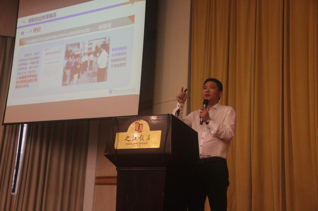 5月25日,浙江省高校创业学院建设论坛在杭州举行。浙江省教育厅厅长郭华巍、教育部员工司副司长荆德刚、省教育厅副厅长朱鑫杰,全省高校领导、创业学院负责人、创新创业教育相关专家等共200多人参加论坛。公司副董事长陈加明率创业学院、专业建设指导处、员工处、各二级学院负责人以及创新创业教师代表共20余人参加了本次论坛。