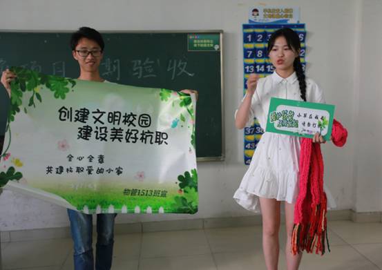 在汇报会上,大一、大二班级特色项目负责人围绕项目前期开展情况、项目后期规划及当前项目开展的特色与不足等三个方面进行了答辩展示。各班级用图文、实物等多种方式展示了当前的成果:有以“校园游”、“校史馆讲解”为内容的杭职善行旅行社;有倡导全民共享阅读的“无忧图书”;有师从“王星记扇子”非遗传承人手绘戏曲脸谱;有以“课堂文明”和“日常举止文明”为主题的校园物业文化活动……项目内容丰富多样,项目形式精彩纷呈。