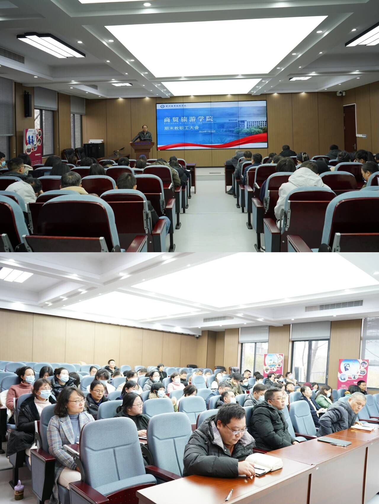 袁江军提醒全体教职工注意春节假期时刻守牢党风廉政底线,鼓励教师利用假期打磨课题和课程建设成果,持续提升学术水平和教学质量。周佳良对专业访企拓岗、助力员工高质量充分就业、困难员工慰问、师生安全等方面工作进行了部署和要求。