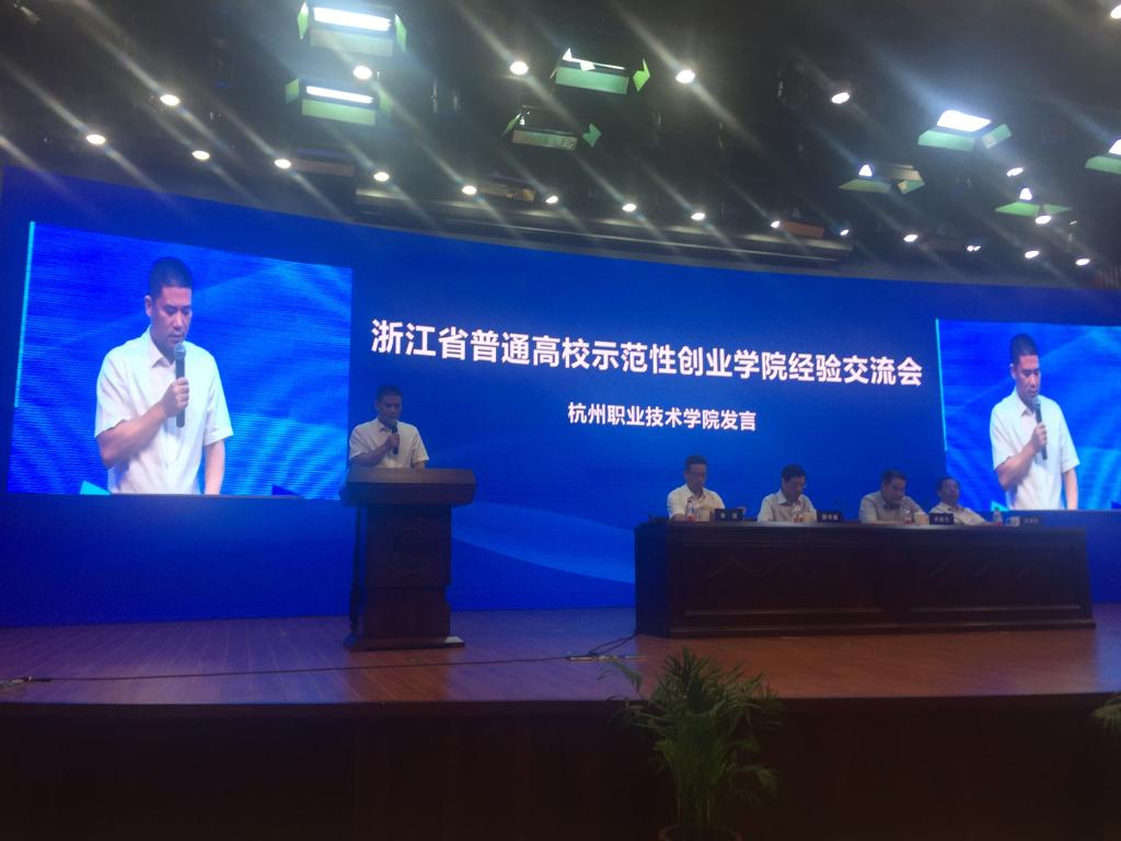 陈加明副董事长代表学校作了题为《创业带动学业提升就业能力》的交流发言,重点从建立健全“四阶段”渐进式创新创业人才培养体系,推出了系列创新创业保障举措,打造了区校共建、成效明显的“国家级”高职员工创业园等三个方面介绍了公司近年来深化创新创业教育改革的主要经验与做法。宁波大学、浙江理工大学、温州大学瓯江学院也分别在会上做了交流发言。