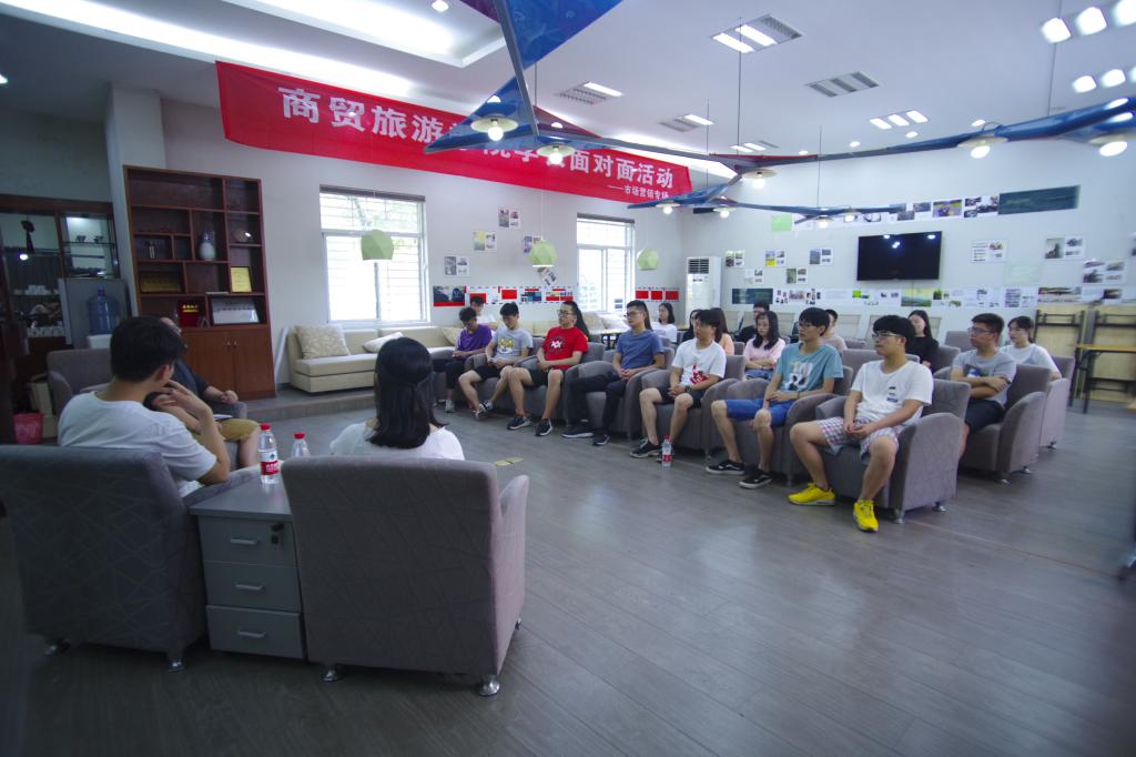 6月21日下午,yl1111永利集团在创业园1124开展第六期“员工面对面”活动。本次“学长面对面”与以往不同的是更有针对性。特别邀请了2015届毕业生、浙江坚利进出口有限公司总经理陈绘澎,2018届毕业生李鲁飞与大一、大二的营销专业员工做客开展对话。
