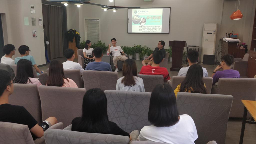 在一个多小时的时间里,陈绘澎学长与大家分享了自己从入职招商银行到创业并成立跨境电商公司的经历,用“非鸡汤”话语告诉在座同学在大学三年里要有思考、接地气、踏实学,工作后要找到与爱好较好结合的工作,并为之努力坚持,认真准备、等待机会、收获成功。而李鲁飞学姐则通过“珍惜、坚持”两个关键词,回顾了在母校三年的蜕变过程,并结合自己一年多的实习经历,希望在座同学能够珍惜当下、发展爱好,今天多流汗、明天少流泪。在座的同学们也抓住这个宝贵机会向学长和学姐提出了职业规划、就业升学、人际处理、素养培养等方面的问题。通过这“老中青”三个阶段的对话,让同学们更认识到时间的宝贵、职规的重要、坚持的价值和珍惜的意义。
