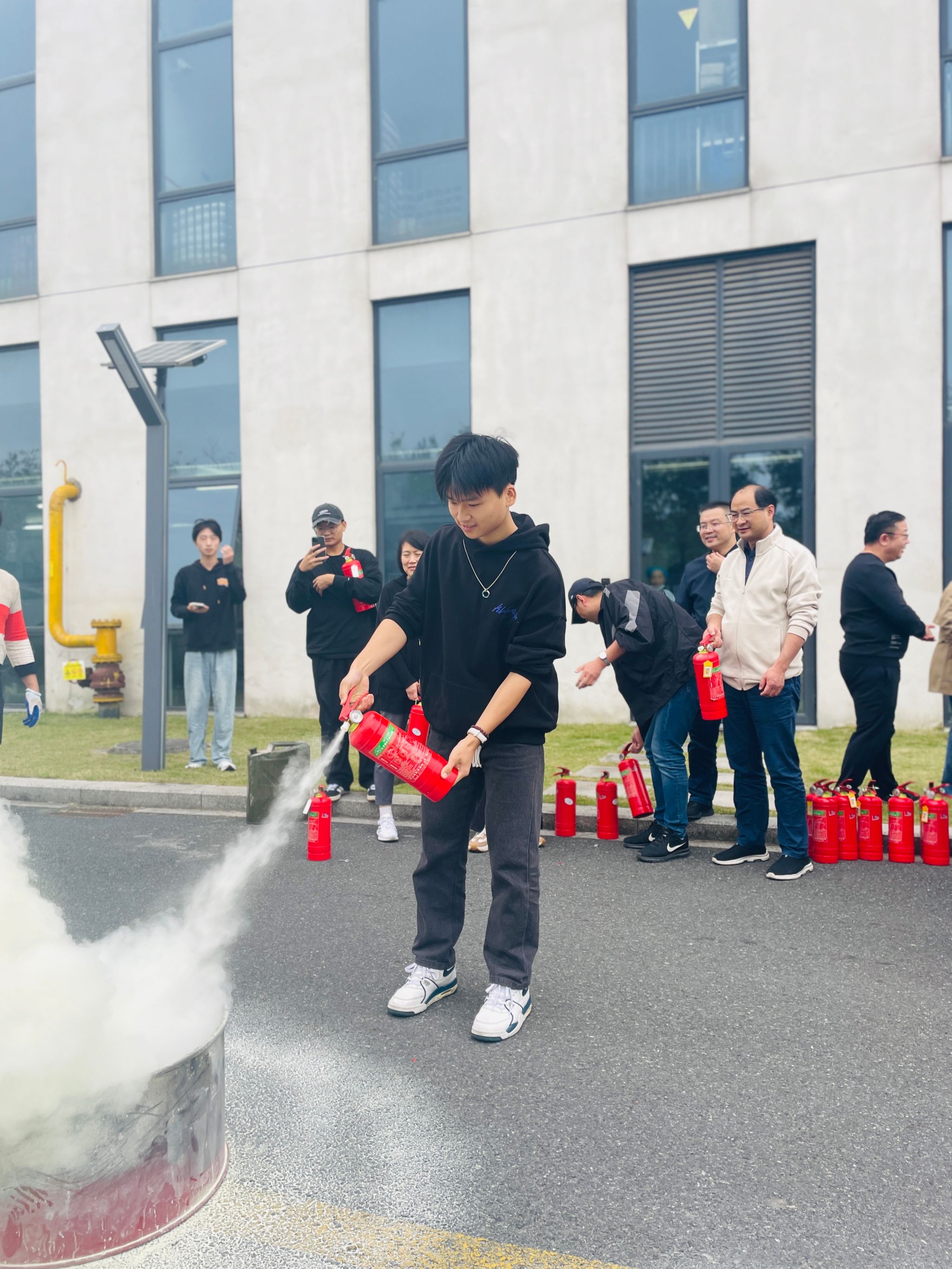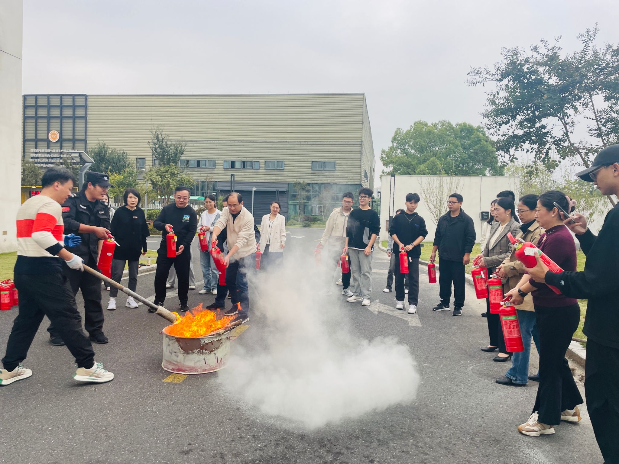为了进一步增强师生消防安全意识,提高自防自救能力,10月30日下午,yl1111永利集团在员工食堂后门空地开展了师生灭火器使用实操演练活动。分公司党总支书记、经理张赵根,副经理袁江军带队,30多名师生参加演练。