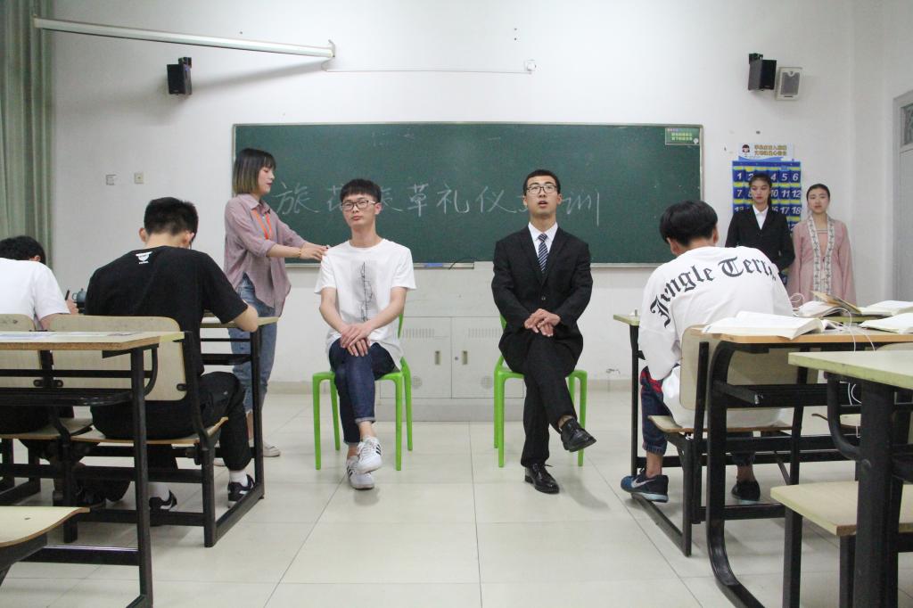 在活动中,“旅花”孔悦同学首先为班级同学表演一段茶艺表演,并请同学们品尝茶的味道,带同学们领略茶文化的魅力。随后“旅草”蔡震和文明礼仪形象大使林程晨向班级同学展示礼仪动作,示范标准蹲姿、站姿及相关的礼仪规范,尽显端庄、大方、儒雅行为举止。受培训的同学积极参加到了文明礼仪培训中,跟示范掌握各类礼仪姿态,学习文明礼仪行为和动作。