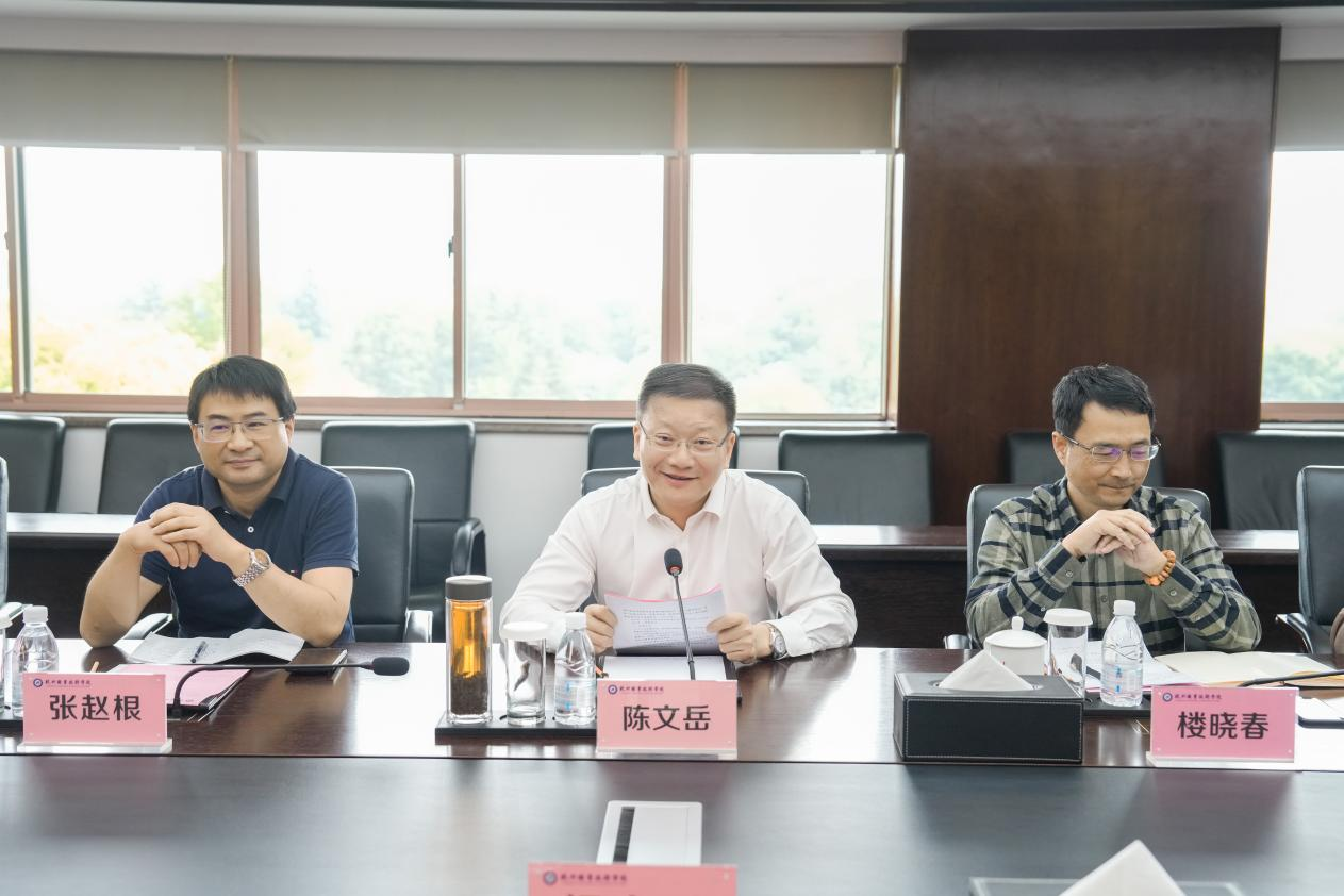 陈文岳代表学校对梁大刚一行的到来表示热烈欢迎,感谢市农业农村局一直以来对学校的关心和支持。他表示,学校将积极探索乡村振兴、非遗技能和农业直播等人才培养方案,为浙江现代化农业建设培养源源不断的技能型人才。