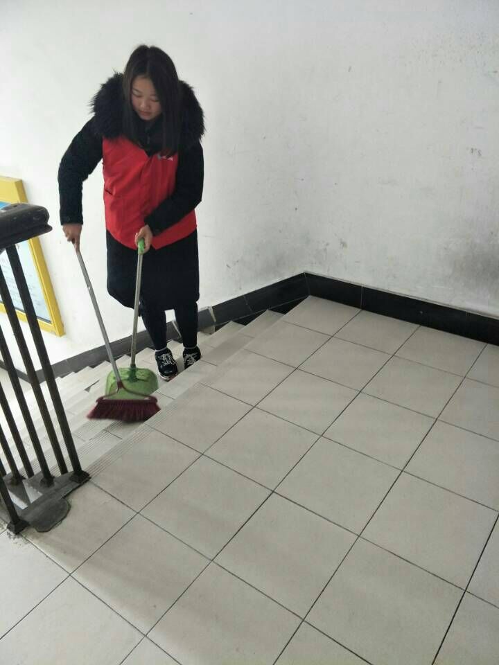 当日下午,志愿者们分为两队开展志愿服务。“红一队”为减轻寝室阿姨的负担,整体对宿舍公共场所进行规整性大扫除。楼梯上下、楼层通道、进出大门都有志愿者们打扫、擦拭的影子,不怕脏、不喊累,为同学们提供了干净整洁的生活环境。“红二队”在学校大门口进行交通劝导活动,主要负责来往交通秩序的维护,让大家更加有序地遵守交通规则。