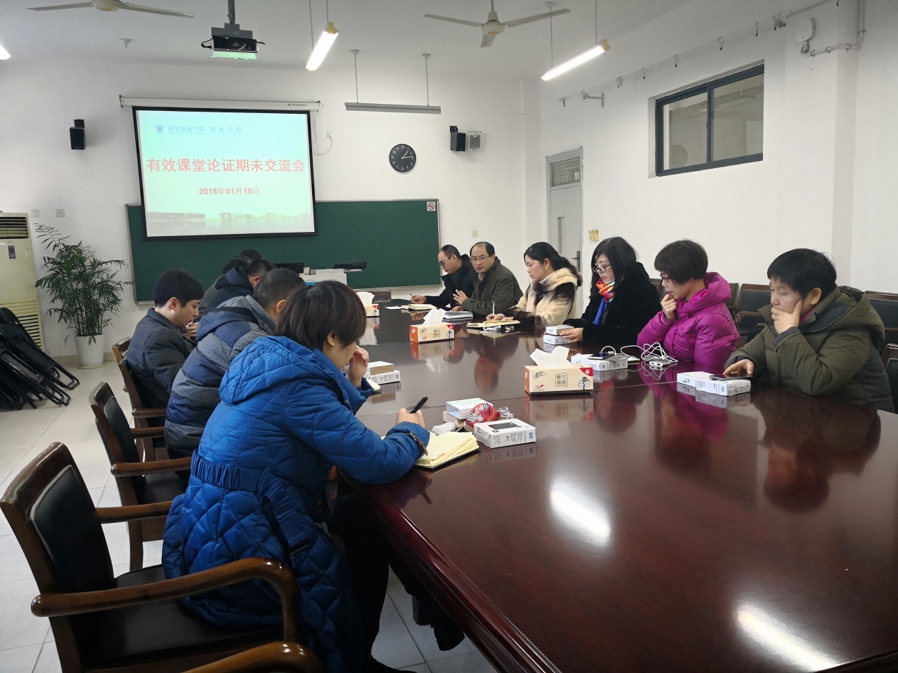 首先,戴凤微简要小结了本学期有效课堂认证的实施进展情况,布置了接下来“资源建设”与“教学创新”项目评审环节汇报的安排,要求8位老师认真准备,准时出席。接下来与会人员交流了从暑假开始的有效课堂认证的心路历程,老师们普遍反映虽然过程辛苦但自己还是收获良多:对课堂教学有了更多的思考与尝试,对课程资源建设也投入了更多的精力,通过信息化平台与员工的互动与交流也明显增强。