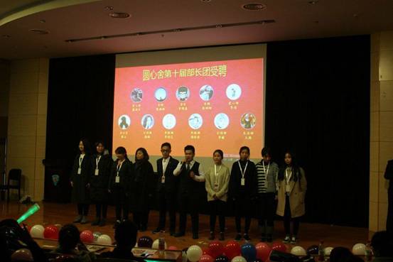圆心舍员工干部精心剪辑的庆生视频拉开了晚会序幕。紧接着街舞社带来的《topsky 》率先引燃了全场的气氛。随后指导老师陈玉燕致辞,她希望圆心舍能一直坚守圆梦、圆心,不忘初心,继续做好家庭困难员工的成长成才服务。晚会中穿插的歌曲《landscape》见识了学长高超的吉他指法,《成都》勾起芸芸思乡之情,《小幸运》活跃了气氛,《爱丫爱丫》青春气息爆棚。青年弘毅社带来的相声,小品《四大才子》、《甄嬛传》,精彩的表演赢得观众拍手叫好,笑声不断。舞蹈《good time》、《厉害的姐姐》、《你干嘛》更是把晚会气氛推向高潮,当然使气氛达到最高点的还是部长授聘仪式。当圆心舍上一届部长把聘书递给新部长时,也把做好圆心舍的责任与期望交给了新一届员工干部。新舍长李陈嘉在致辞中一番肺腑之言引起了在场所有同学的共鸣,掌声久久未停。晚会最后在给家庭困难员工送上暖被,现场观众一起共享十周年庆生蛋糕中落下帷幕。