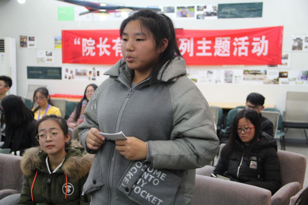 在师生交流环节,同学们围绕“入党”话题自由提问,如“入党需要具备哪些条件”、“怎样树立正确的入党动机”、“如何培养优秀的党性”、“如何高质量地通过考察期”、“如何调和集体活动及性格特点之间的矛盾”以及“怎样在学习生活中做好带头示范作用”等。在交流中,王天红结合自身入党经历以及工作经验多层次、多角度地剖析和回答了这一系列问题,从入党意愿到入党动机、从认知党性到培养党性,鼓励同学们正视矛盾,辩证分析解决问题,使党的价值观与自身价值观相契合,在大学的平台上学会努力尝试、努力改善。同时特别强调入党对学习有较高的要求,需要同学们把握好学习、生活和工作之间的关系。
