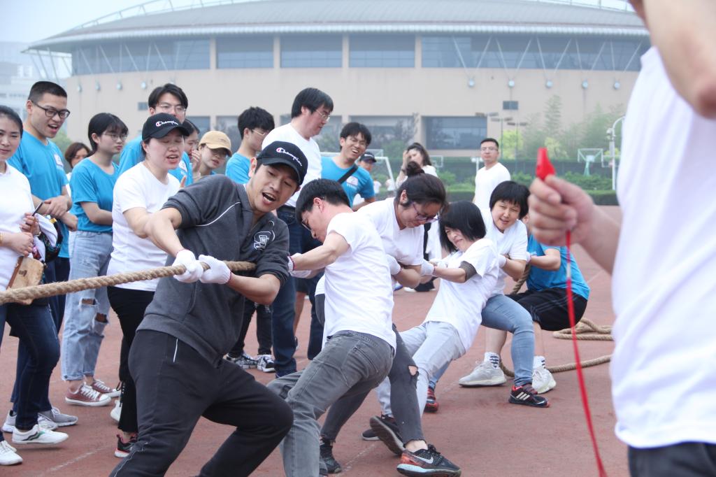 本次师生趣味运动会涉及拔河、“八人九足”、压气球、跳麻袋接力等项目,以分组形式进行,按积分评奖。活动尚未开始,参赛师生便已摩拳擦掌、跃跃欲试。拔河比赛一经展开,就吸引了来往同学驻足观看。各组师生相互鼓劲,齐心呐喊,共同发力,参赛选手总结出的“重心低、节奏齐、下手狠”的拔河技巧更是赢得了观众的阵阵欢呼与喝彩。接下来的“八人九足”更是将此次师生趣味运动会推向高潮,呐喊声、掌声、笑声、获胜者的欢呼声此起彼伏。压气球比赛中,师生们齐心协力、争分夺秒,用行动诠释了商贸师生团结一致、奋发有为的体育精神……在恣意挥洒激情与快乐的赛场上,在有趣而激烈的角逐下,师生们充分享受着比赛带来的愉悦与轻松。