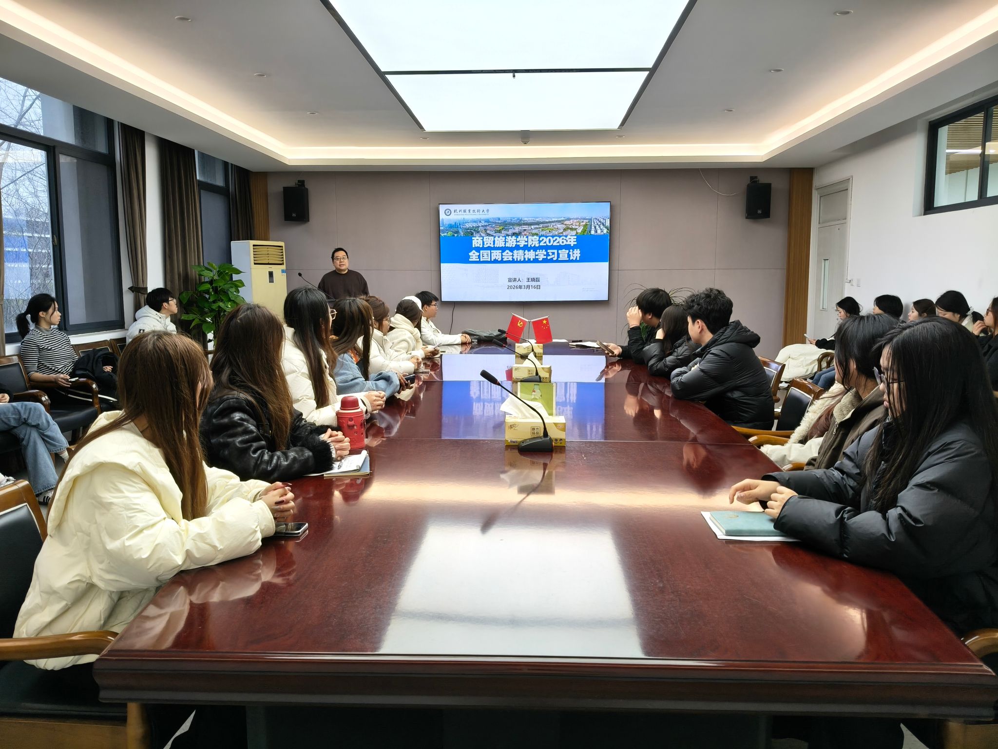 王老师强调,青年学子要从两会“旁观者”成为“践行者”,通过主动关注、投身实践、实干担当的方式参与到“十五五”发展中。同时要求各班做好班会宣讲,让两会精神落地见效,引导学子将个人发展融入国家大局,以青春之力在这场波澜壮阔的现代化征程中勇往直前。