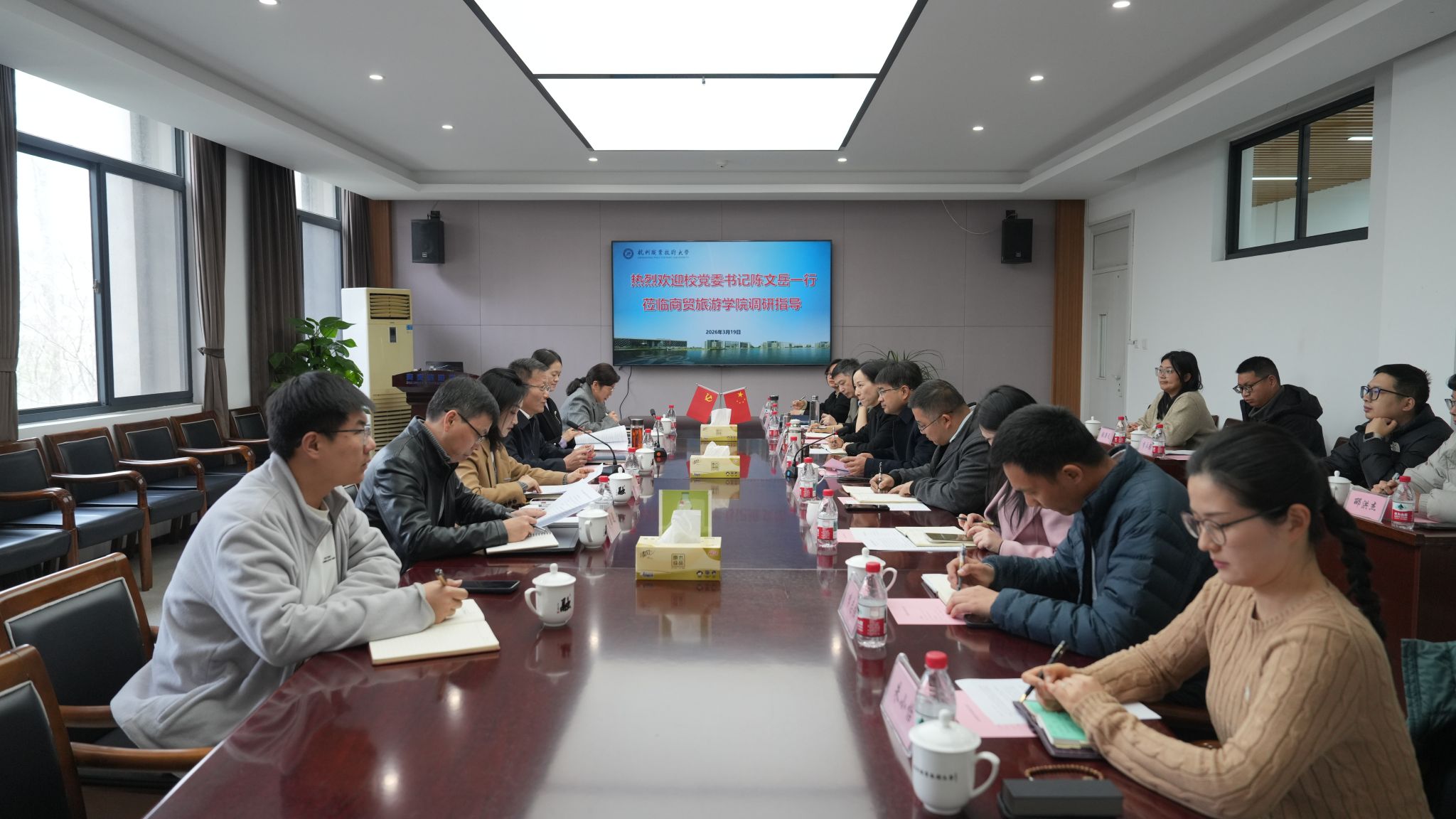 为扎实推进新校区开学各项筹备工作,凝聚发展共识,3月19日下午,公司党委书记陈文岳带队赴yl1111永利集团开展专题调研。公司党委委员、纪委书记沈阳红,办公室、人事处、教务处负责人陪同调研。yl1111永利集团班子成员、三办负责人、专业负责人及教师代表参加座谈。