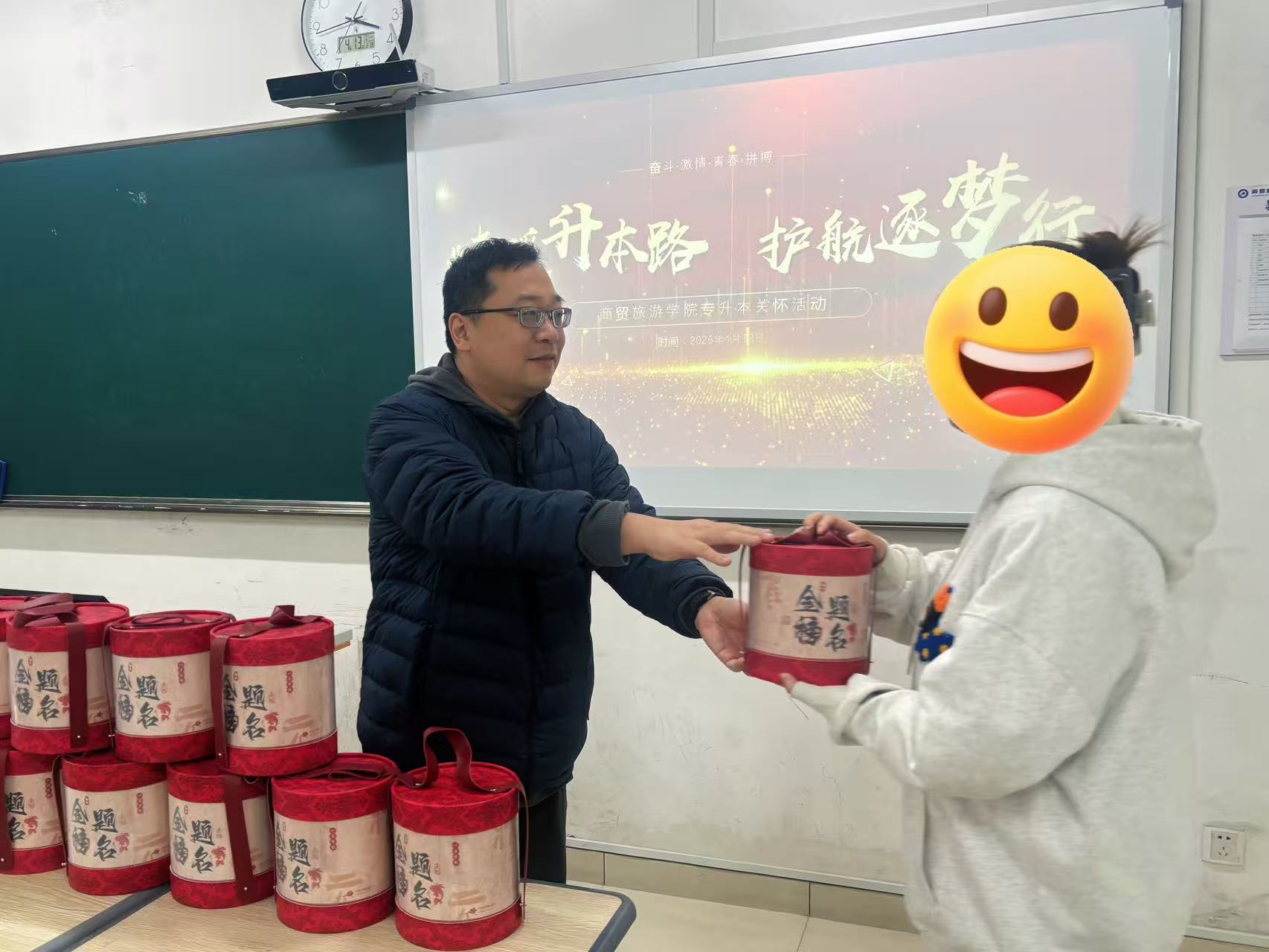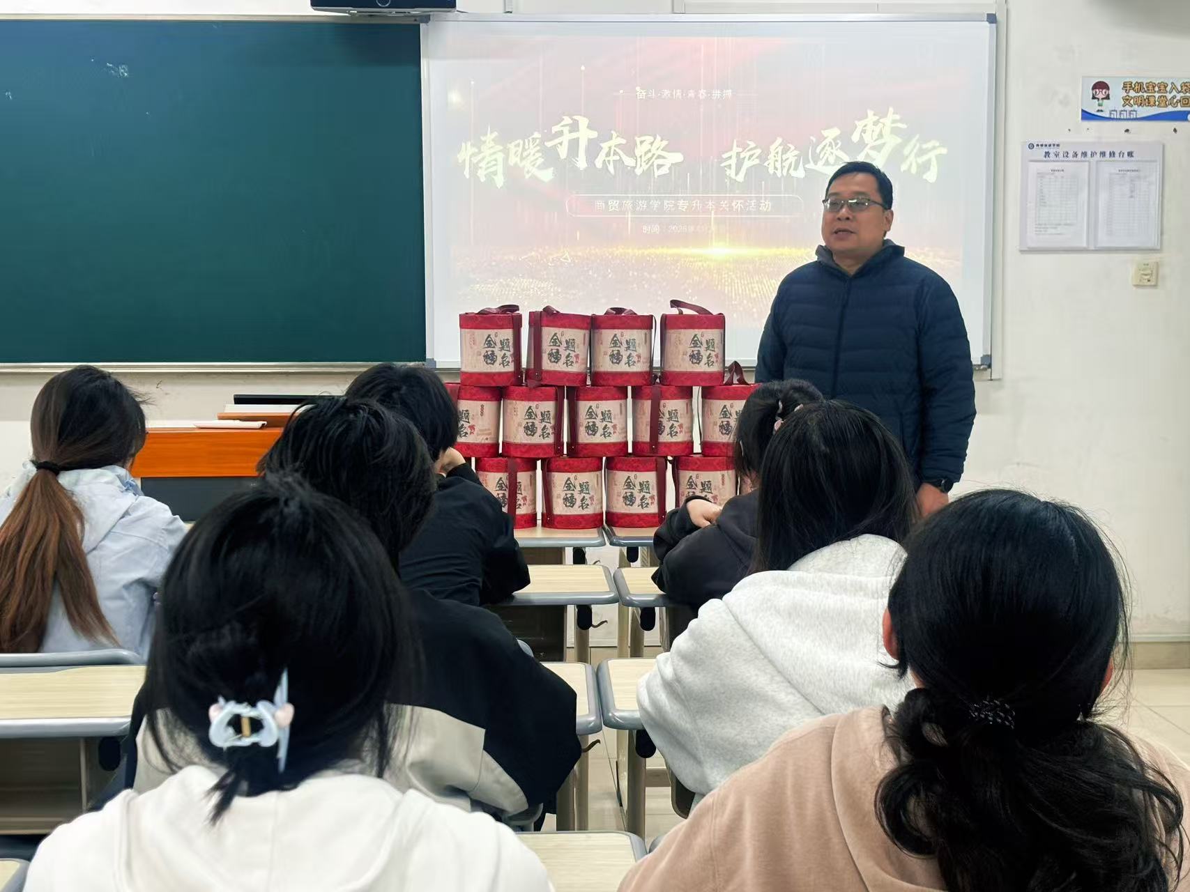 四月的校园,绿意葱茏,专升本考试已然进入最后冲刺阶段。为切实缓解家庭经济困难员工的备考压力,传递学院的人文关怀,yl1111永利集团于4月13日下午在8213教室开展“情暖升本路 护航逐梦行”考生送温暖活动。本次活动面向分院报名专升本的家庭经济困难员工,商贸学工办主任王晓磊、辅导员李剑桥到场,为学子们加油鼓劲、助力圆梦。