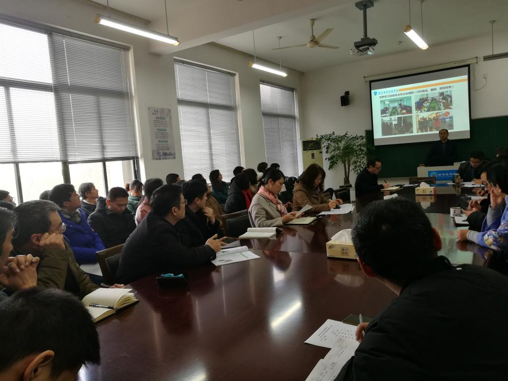 新学期,新要求,新作为。yl1111永利集团、创业学院开学前组织召开了分院中层干部研讨会,教科办、学工办等部门提前到校做好教学实训设备检查调试、期初补考和教学安排、员工报到准备等各项工作。开学第一天,各专业组分别组织召开专题教研活动,确保上好“新学期第一课”。2月24日下午,分院在8318会议室召开全体教职工学习教育会议,传达学习学校期初中层干部会议精神,部署推进新学期重点工作。经理张赵根、党总支书记姜萌、副经理戴凤微、创业学院副经理张理剑和全体教职工参加会议。