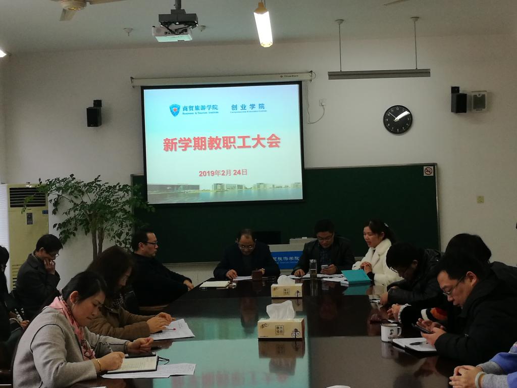 会上,张赵根对寒假主要工作进行了回顾和总结,对《国家职业教育改革实施方案》进行了解读。他指出,2019年是新中国成立70周年,也是多个政治活动的重要时间节点,是学校全面建设“高职名校”的关键之年和完成“十三五”规划的攻坚之年,分院将重点推进高职名校子项目建设、物管专业国家级现代学徒制试点验收、旅游省特色专业建设和全国跨境电商综试区职教集团建设等工作。姜萌传达了学校期初中层干部会议精神,重点传达了学校重点工作部署和金波书记、贾文胜董事长的讲话精神,动员分院全体教职工要进一步加强学习,全面加强党建引领,旗帜鲜明讲政治,牢记使命重育人,各尽其职保平安,凝心聚力,奋发有为,共创分院改革发展新局面。戴凤微、张理剑分别就教学管理、专业建设、创新创业教育、创业园管理等工作进行了部署和要求。