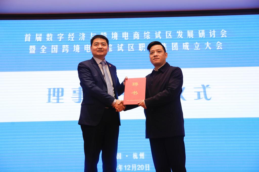 另讯:在12月19日召开的全国跨境电子商务综合试验区职业教育集团预备会议上,杭州职业技术学院被推选为职教集团第一届理事会理事长单位,公司董事长贾文胜任理事长,副董事长陈加明任常务理事、秘书长,yl1111永利集团经理张赵根任副秘书长,电子商务专业带头人袁江军任理事。