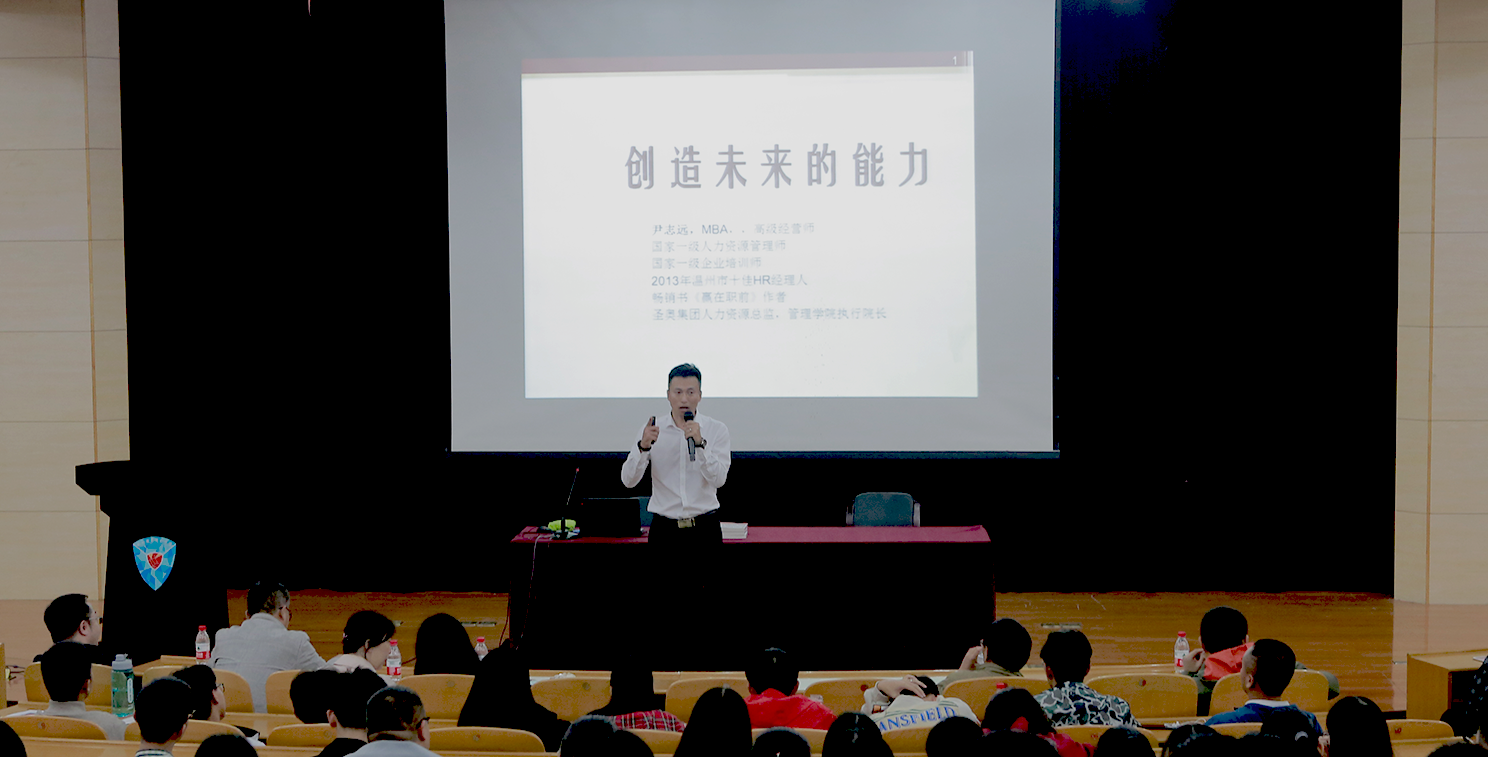 2018年10月24日,创新创业大讲堂第三十六讲在行政楼二楼报告厅举行。本次大讲堂主讲嘉宾是公司校企合作单位圣奥集团人力资源总监尹志远,主题为“创造未来的能力”。