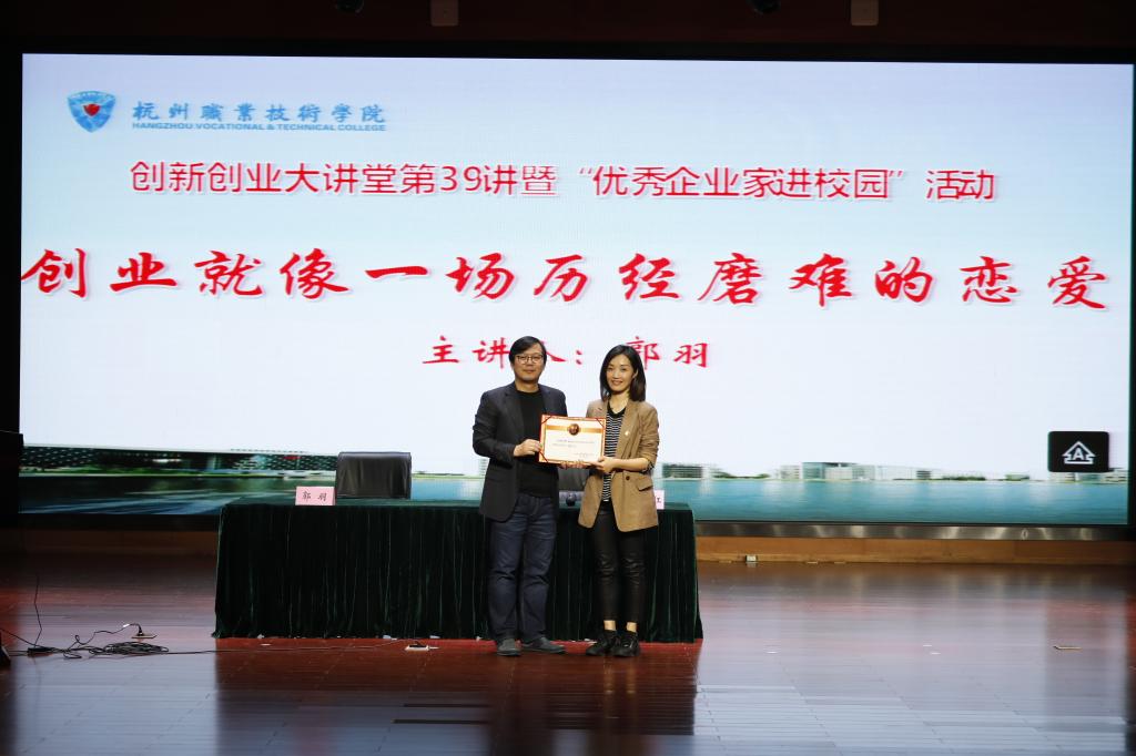 10月30日下午,第39期创新创业大讲堂暨“优秀企业家进校园”活动在图书馆报告厅举行。全国“挑战杯”老员工创业计划竞赛资深专家、“互联网+”老员工创新创业大赛全国总决赛评委、杭州天畅网络科技有限公司董事长兼总裁郭羽以“创业就像一场历经磨难的恋爱”为主题,为公司师生带来了一场精彩的讲座。来自全校七百余名师生到场聆听,本次活动由创业学院副经理何霞红主持。