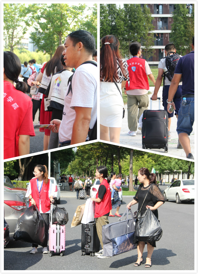 烈日炎炎,挡不住员工志愿者的工作热情。他们活跃在校园各个场所,处处有他们忙碌的身影。校门口接待欢迎、报到点仔细讲解、校园内引导帮助,教学楼介绍情况、宿舍楼入住办理。老师和志愿者们的热情服务,让新生及家长深深感受到了商贸的温暖。一位来自台州的新生家长说,小孩子第一次出远门来杭州读书,心里总有些担心,来到学校后,感受到老师和员工们的热情,就像家人一样接待我们,我也就放心啦。