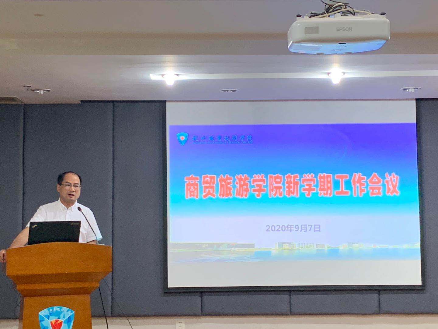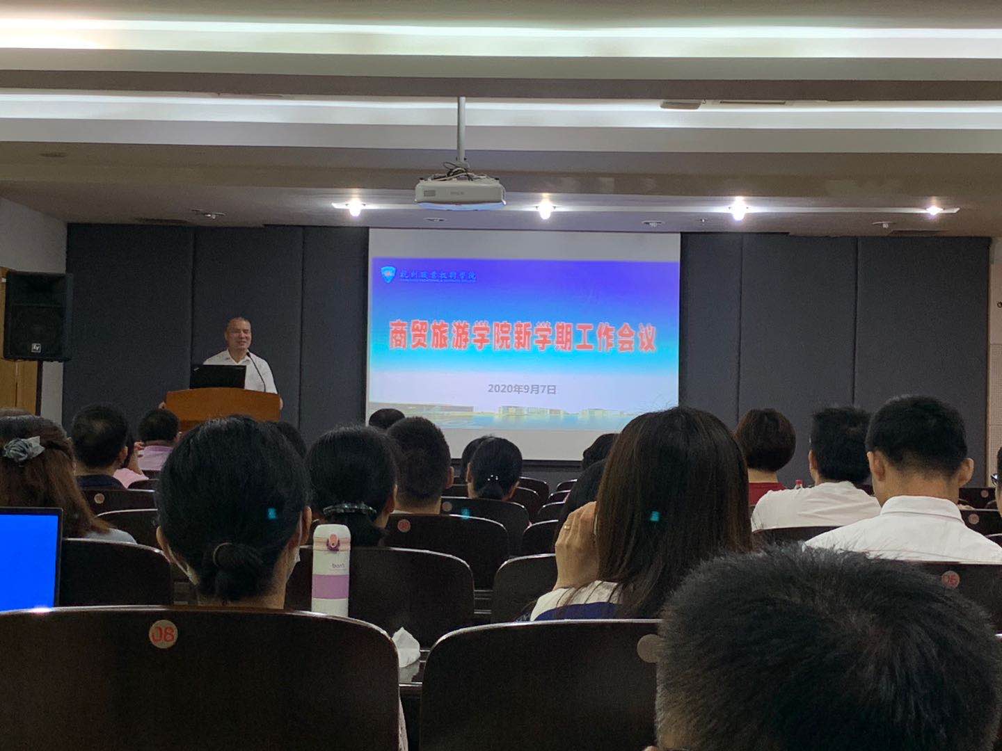 张赵根首先传达了学校教师干部大会、教育部原副部长鲁昕专题报告会、暑期中层干部培训暨学期初工作会议和六届一次“双代会”等会议精神,并对暑期各专业、各部门卓有成效地开展工作的情况进行了回顾。他结合徐时清董事长提出的学校发展“五问”,针对分院发展面临的机遇和问题进行了对比分析。他指出,当前商贸迎来了前所未有的发展态势,有了高水平发展的底气,但同时也面临着校企合作优化升级、专业数字化转型、团队队伍提升、教学条件改善、教学成果突破等方面的巨大压力。新阶段将重点推进“一二三六”战略,通过强化党建引领,贴近行指委和大企业,以贡献求支持,在服务学校、服务杭州、服务国家战略中提升专业办学品位,锻造专业品牌,推动专业建设、团队队伍、社会服务、文化育人、员工培养、内部治理实现高水平发展。最后,他对疫情防控常态化下的公司产品管理、电子商务国家教学创新团队建设、跨境电商职教集团建设、推进与阿里巴巴的深度合作、绩效工资分配改革、跨专业培养拔尖创新人才等新学期重点工作进行了部署和强调。