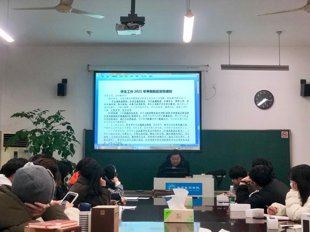 12月28日下午,yl1111永利集团在8318会议室召开期末班级总结会暨员工安全及疫情防控会议。分院学工办王晓磊、陈伶伶、陈玉燕及2018级、2019级班长和考勤员参加会议。