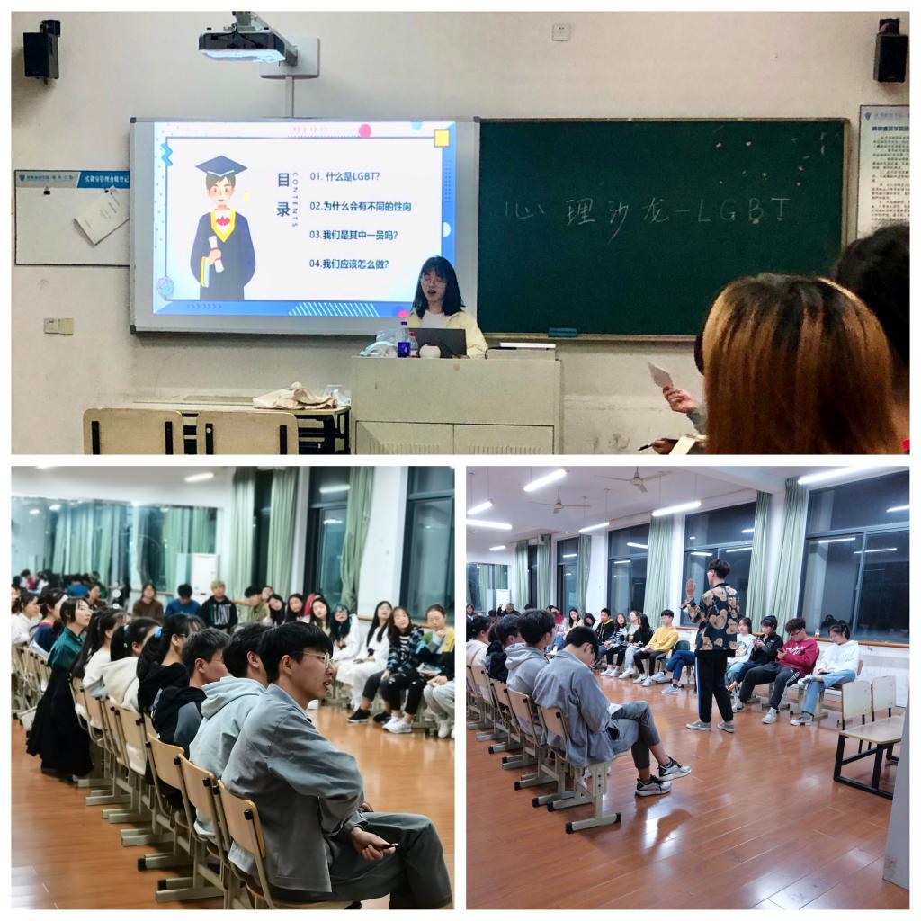 为更好的宣传和普及心理健康知识,进一步激发商贸学子对心理健康知识的兴趣,商贸心理健康协会于11月19日晚在八号楼形体房举办了“悦纳他人-LGBT主题心理沙龙“。本次活动由商贸心协会长钱颖娜主持,商贸心协、校心协以及20级各新生班级共五十余人次参与。