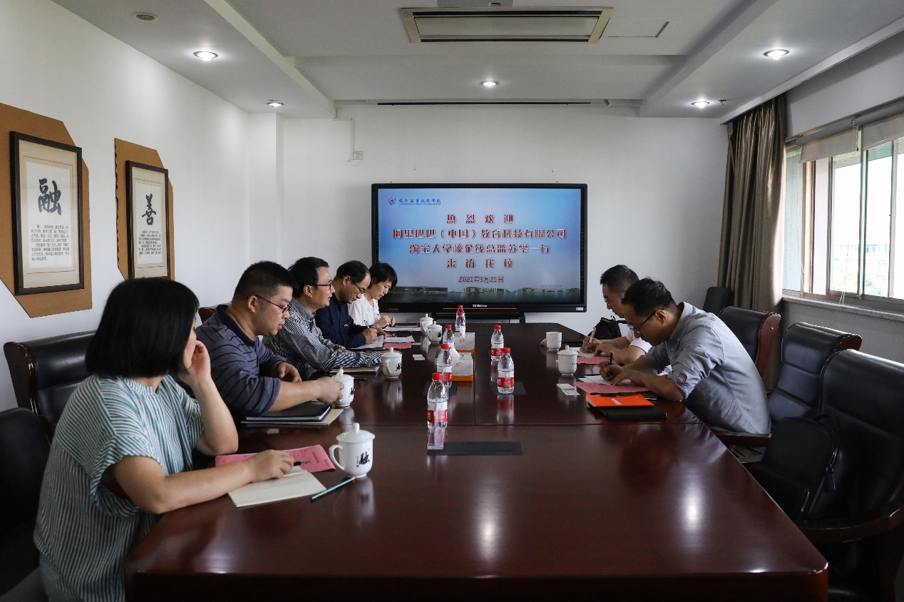9月25日上午,阿里巴巴(中国)教育科技有限公司淘宝大学校企线总监苏攀、高级运营专家张雷一行来访公司,商洽校企合作事宜。副董事长楼晓春,yl1111永利集团经理张赵根、副经理袁江军及电子商务、跨境电子商务专业负责人参加座谈接待。