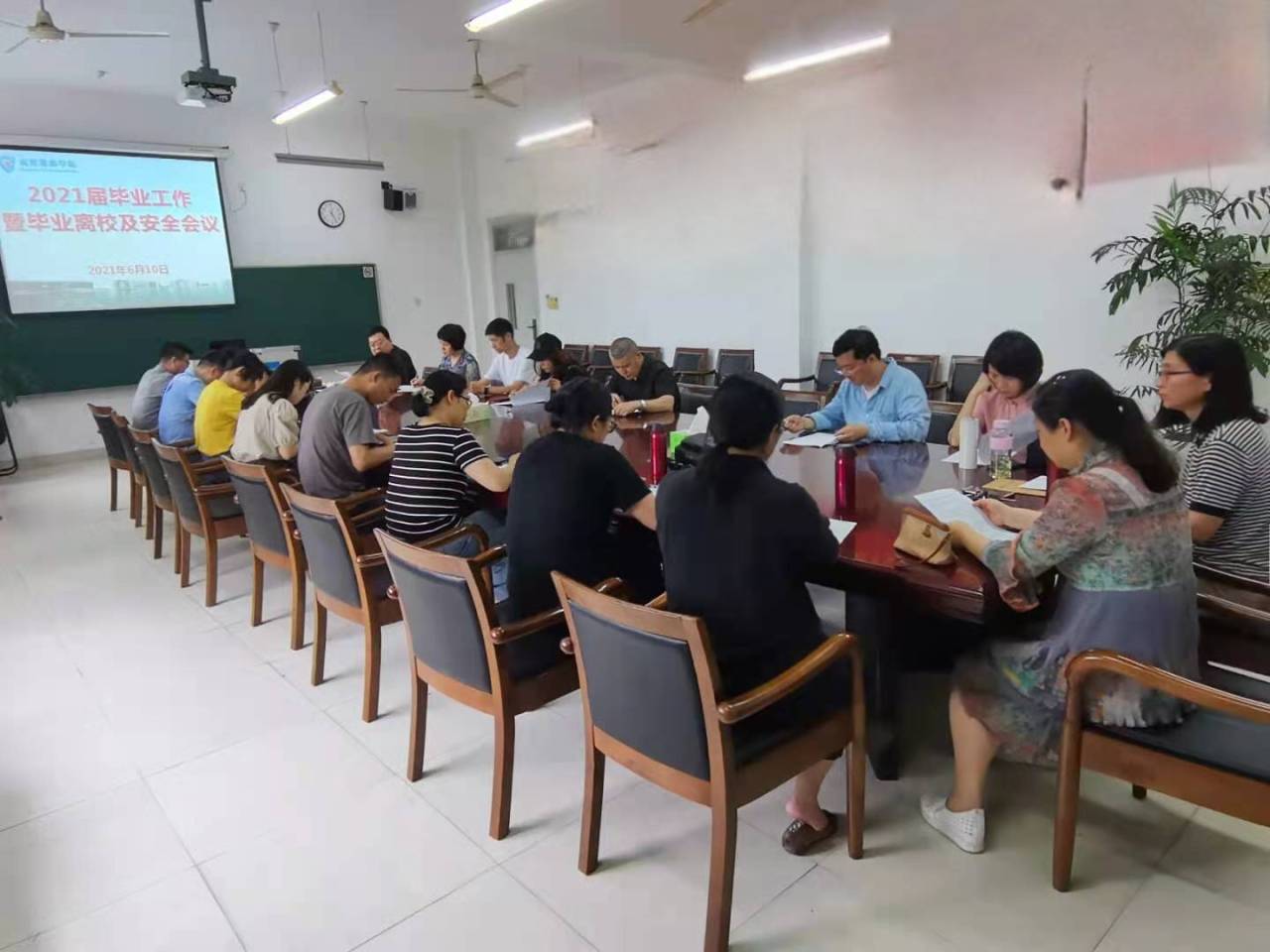 6月10日中午,yl1111永利集团在8318会议室举行2021届毕业工作暨毕业离校及安全会议。商贸旅游公司党总支副书记周佳良,学工办王晓磊、李志强、赵媛媛和全体班主任参加会议。