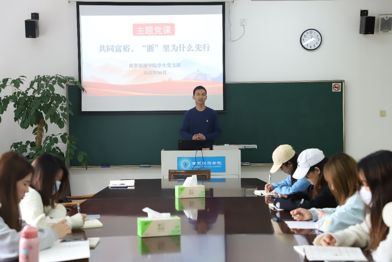 会上,李志强以《共同富裕,“浙”里为什么先行》为题作党史教育主题党课。他以微博热搜“浙江的农村能有多豪华”这个话题引入,从“总书记对浙江的高度期望”“浙江各项指标都走在全国前列”“干在实处、走在前列、勇立潮头的浙江精神”三个方面深入浅出地分析了“十四五”规划选择浙江创建共同富裕示范区的原因。李志强分享说,浙江作为中国革命红船的起航地、改革开放的先行地、习近平新时代中国特色社会主义思想的重要萌发地,一直以来都受到了总书记的高度期望。浙江人才辈出,青年风华正茂。今天的浙江被赋予了重大历史使命,站在新的起点,共同富裕示范区建设需要我们每个人秉持与时俱进的浙江精神,争做时代的弄潮儿!
